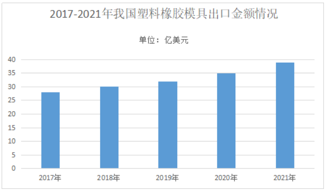 模具行业市场分析数据显示,2021年我国塑料橡胶模具出口金额达到39.67亿美元,占同期模具进出口总额的比例超过60%,反映出了我国汽车模具和家电模具产品在全球具有较强竞争力。塑料橡胶模具进口金额为8.70亿美元,占模具进口总额的比例超过44.89%,表明我国塑料橡胶模具还存在较大的进口替代空间。